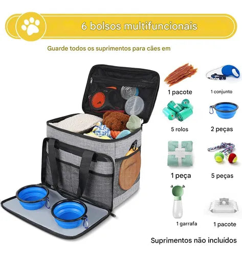 Bolsa de Viagem Pet Grande com 6 Peças Mochila Organizadora Preta