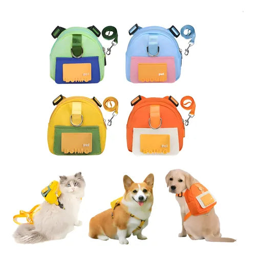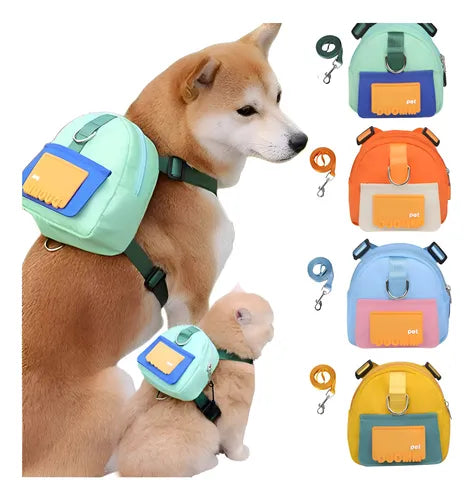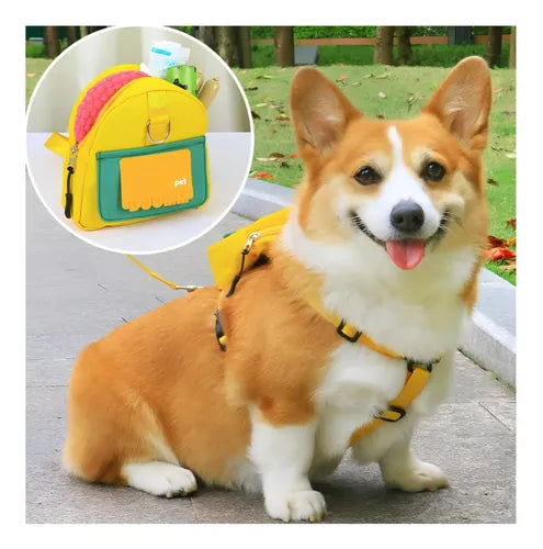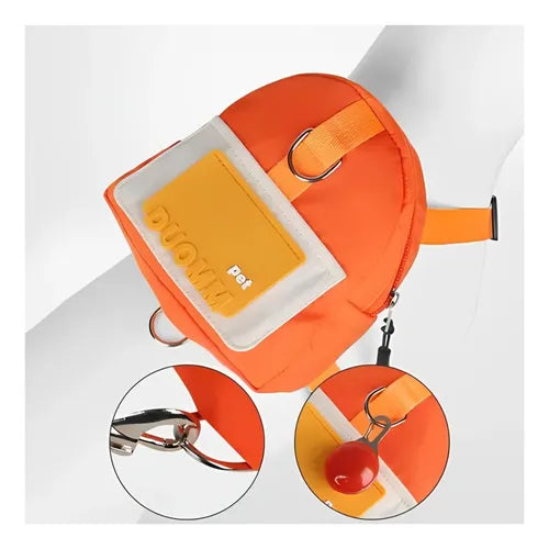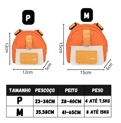 Coleira Peitoral Pet com Mochila Porta Saquinho para Passeio Tamanho P Laranja