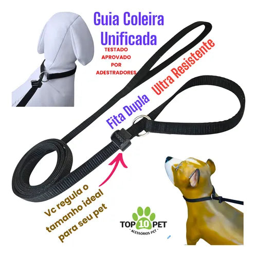 Guia Coleira Unificada Pet 1,50 m Premium para Adestramento Alta Resistência Preta