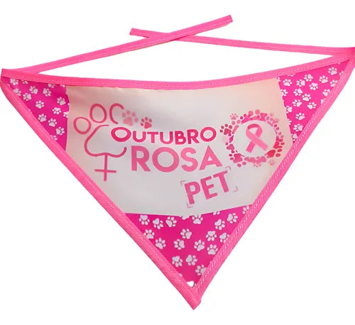 Kit Bandanas e Laços Pet Outubro Rosa Tamanho M Acessórios Temáticos
