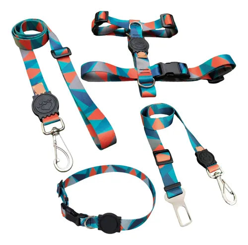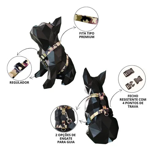 Kit Passeio Pet com Coleira Peitoral Guia e Cinto de Segurança para Carro Porte Pequeno