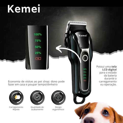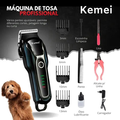 Máquina de Tosa Pet Profissional Sem Fio para Cães e Gatos Bivolt Preta