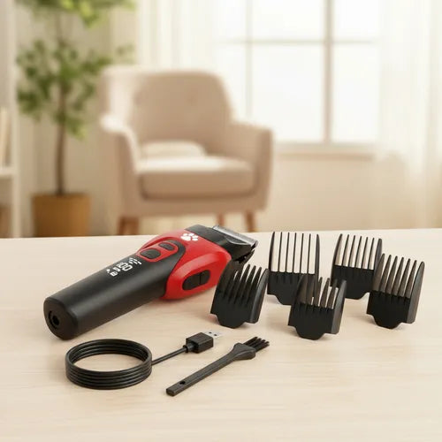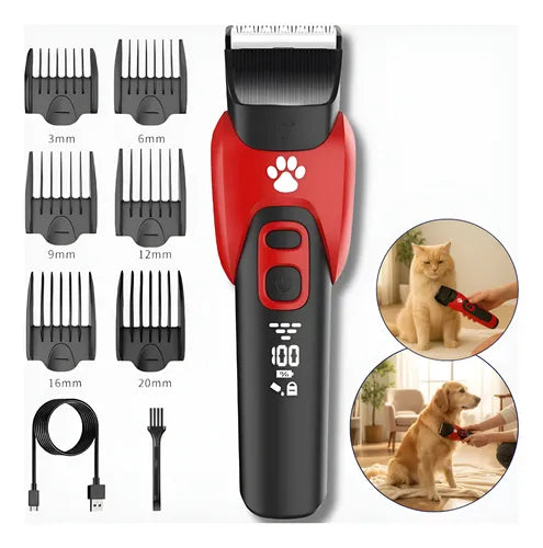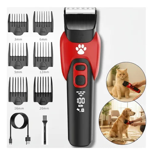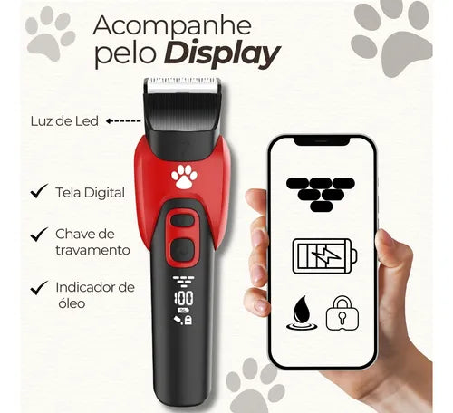Máquina de Tosa Pet Profissional Sem Fio Recarregável Bivolt Preto e Vermelho