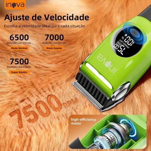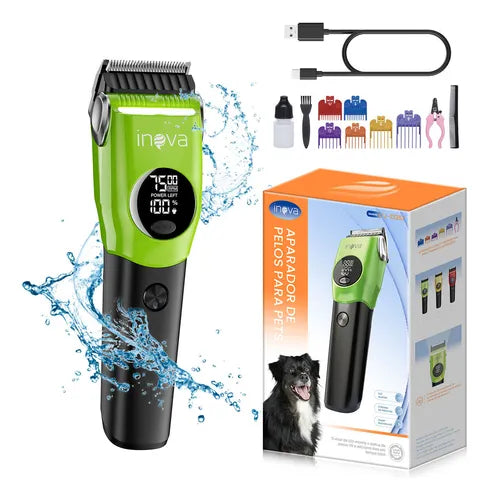 Máquina de Tosa Pet Sem Fio Inova Cases Silenciosa 3 Velocidades Verde