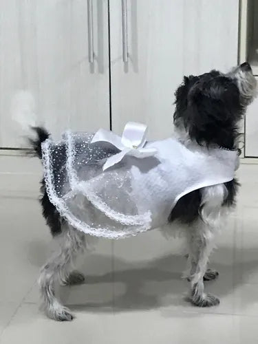 Vestido de Noiva Pet Luxo Tamanho M para Cães Médio