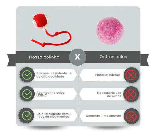 Bolinha Interativa Recarregável USB para Gatos Pet Cor Vermelha