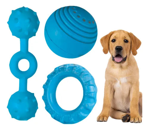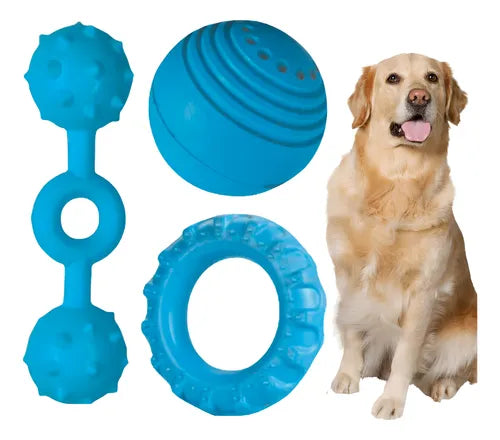 Kit 3 Mordedores Pet Maciços para Cachorros de Grande Porte Azul