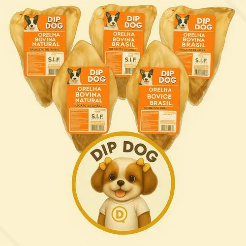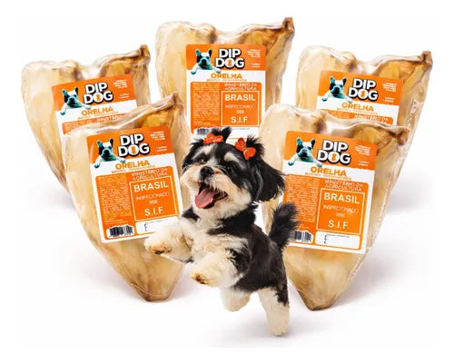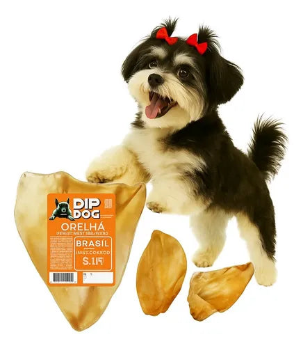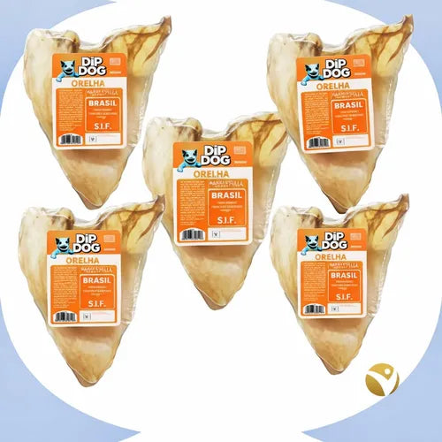 Kit 5 Orelhas Bovinas Naturais para Cães Mordedor Pet Dip Dog