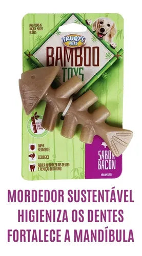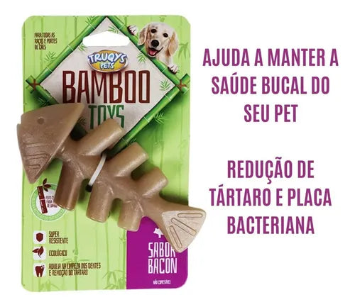 Mordedor Pet Truqys Osso Maciço de Bamboo com Aroma de Bacon Cor Marrom