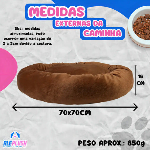 Cama Redonda de Pelúcia Marrom Confortável para Cães e Gatos