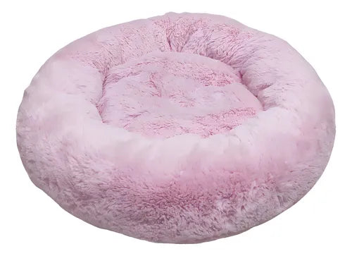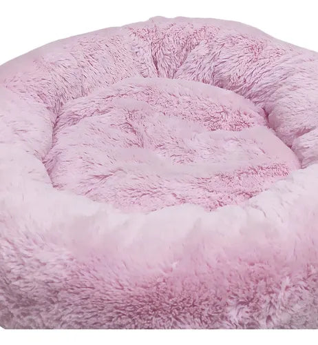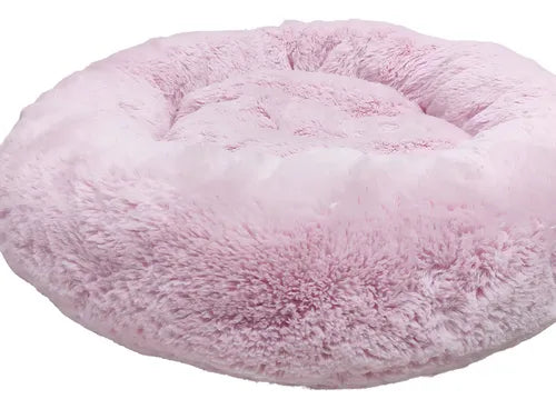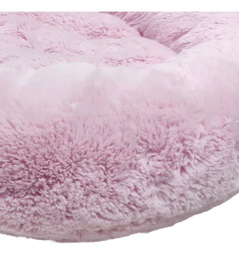 Cama Pet Nuvem Redonda de Pelúcia Super Macia 50x50 Rosa para Cães e Gatos