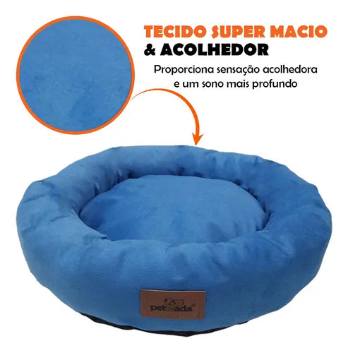 Cama Pet Redonda Grande Antifrio Lavável 80x80 Conforto Para Cachorros Cor Azul
