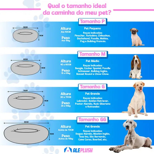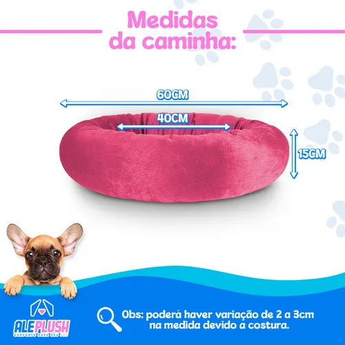 Caminha Pet Redonda de Pelúcia Macia para Cães e Gatos Rosa Aleplush