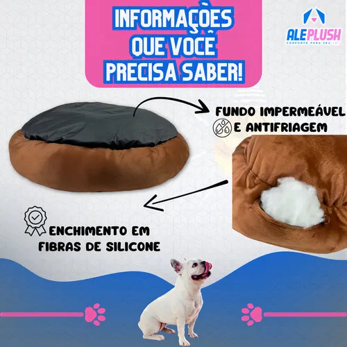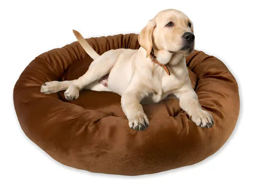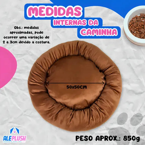 Caminha Pet Redonda de Pelúcia para Cães e Gatos Tamanho G Cor Marrom