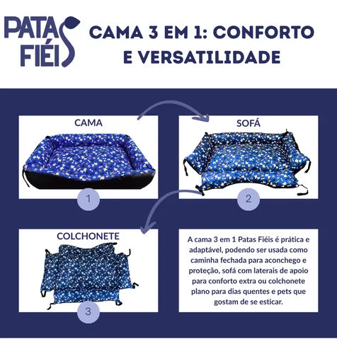 Colchão Lavável para Cachorro Grande 90x60 Base Impermeável Patas Fiéis