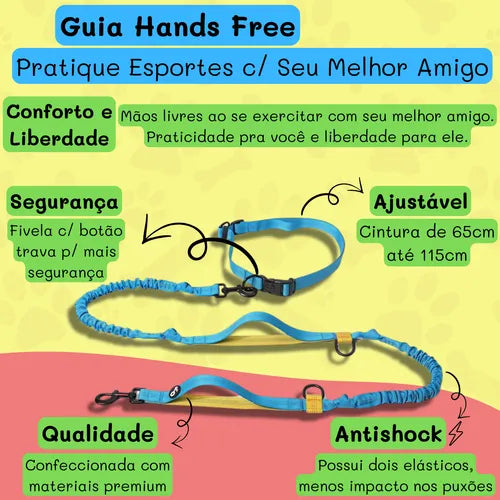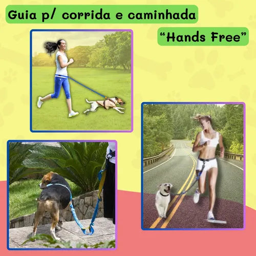 Guia Coleira Pet Mãos Livres para Passeio e Corrida Hands Free