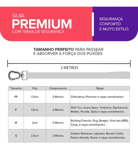 Guia Longa 2 Metros Basic Pet para Cachorros Médio Passeio e Adestramento Lily