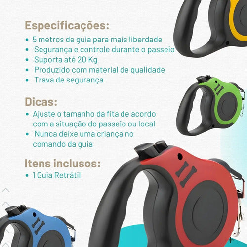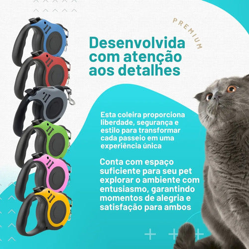 Guia Retrátil Pet 5 Metros para Cães e Gatos Até 20kg Passeio Seguro