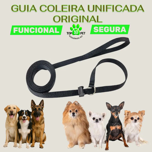 Guia Unificada 2m com Coleira Enforcador para Cães Adestramento