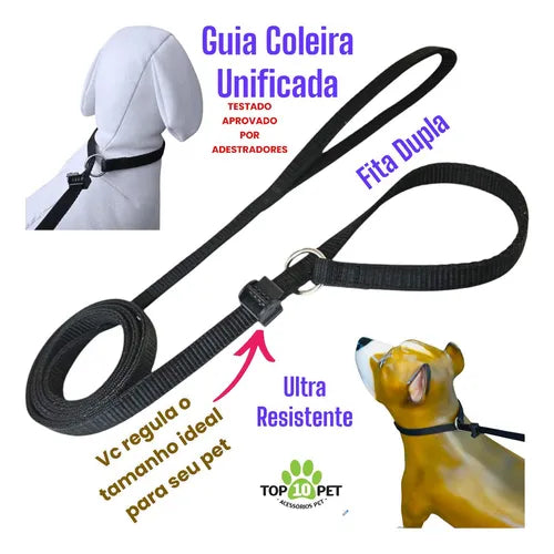 Guia Unificada K9 1,85 Metros para Passeio e Adestramento Preto