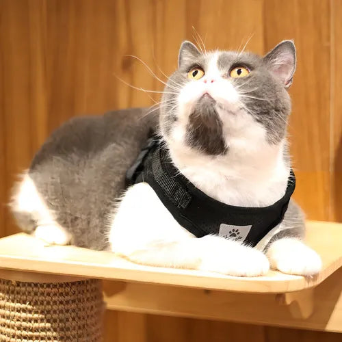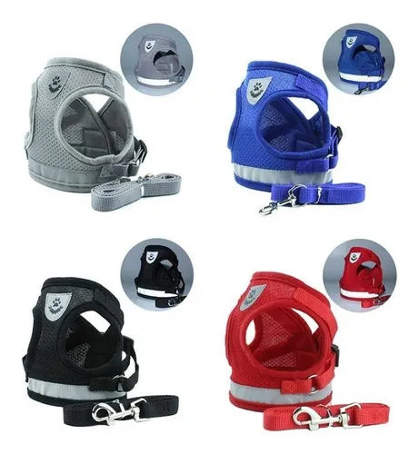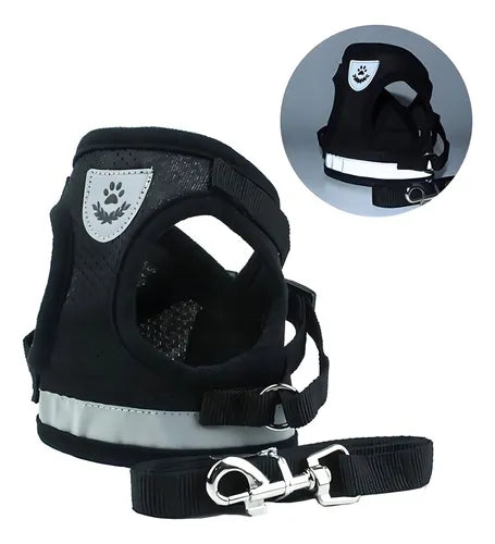 Peitoral Ajustável com Guia Refletivo para Cães e Gatos Tamanho P Preto