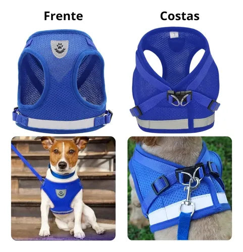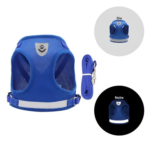 Peitoral Colete Refletivo Azul com Guia para Cães e Gatos Tamanho P