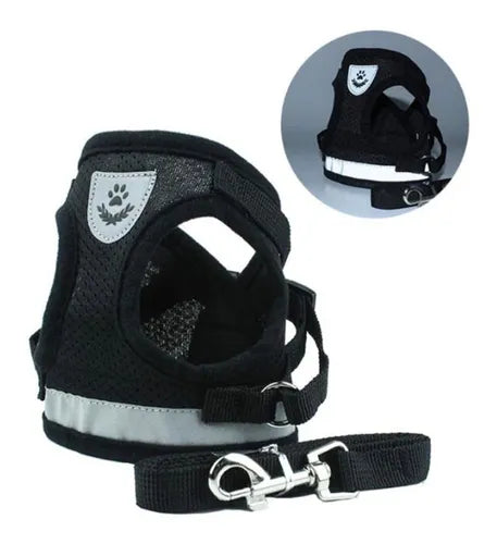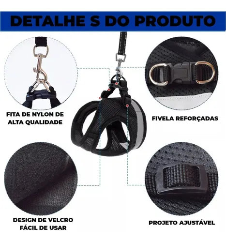 Peitoral Colete Refletivo com Guia para Cachorro Tamanho G Preto