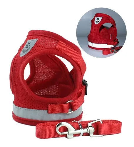 Peitoral Colete Refletivo com Guia para Cachorro Tamanho P Vermelho