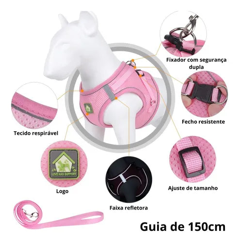 Peitoral Colete Refletivo com Guia para Cachorros Conforto e Segurança
