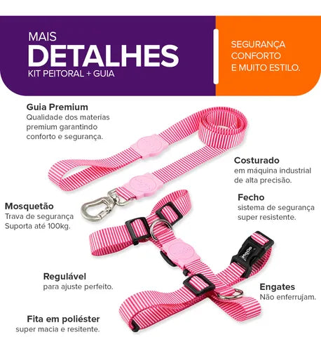 Peitoral com Guia Mood Pet para Cachorro Tamanho Médio Conforto no Passeio