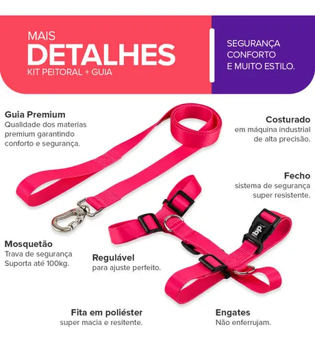 Peitoral com Guia para Cachorro Basic Pet Tamanho Grande Rosa