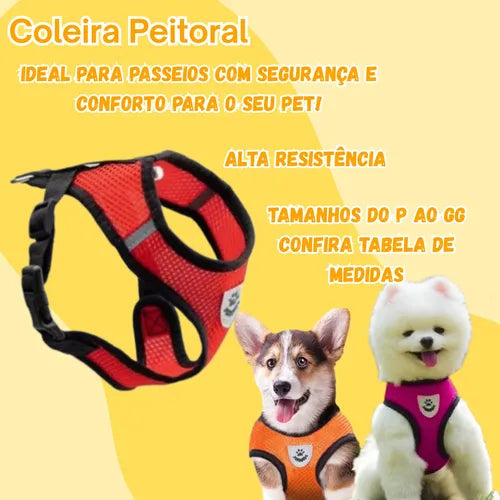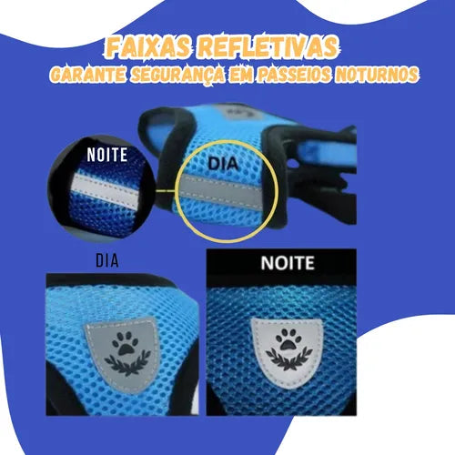 Peitoral com Guia Refletivo para Cães e Gatos Mais Segurança no Passeio