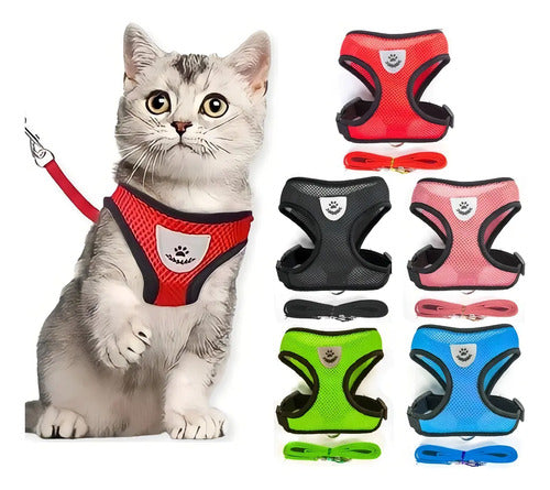 Peitoral para Gatos com Guia Preto Tamanho M com Faixa Refletiva Passeio