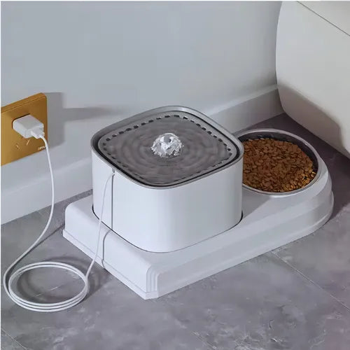 Fonte de Água Pet Automática com Comedouro 2 em 1 para Cães e Gatos
