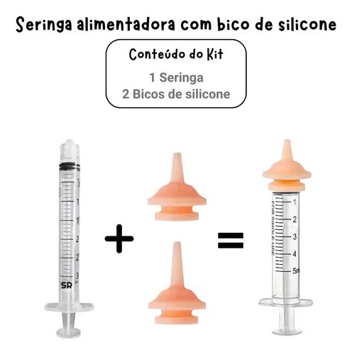 Kit com 2 Bicos Alimentadores e Seringa para Alimentação de Pets