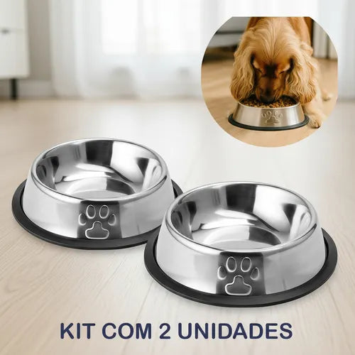 Kit com 2 Comedouros Pet em Inox 550ml para Cães de Porte Médio