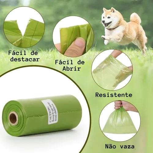 Kit 30 Refil Cata Caca Biodegradável 450 Saquinhos para Pets Verde Claro
