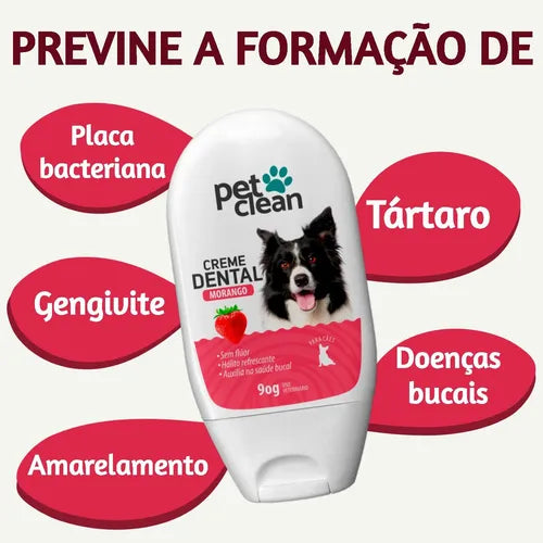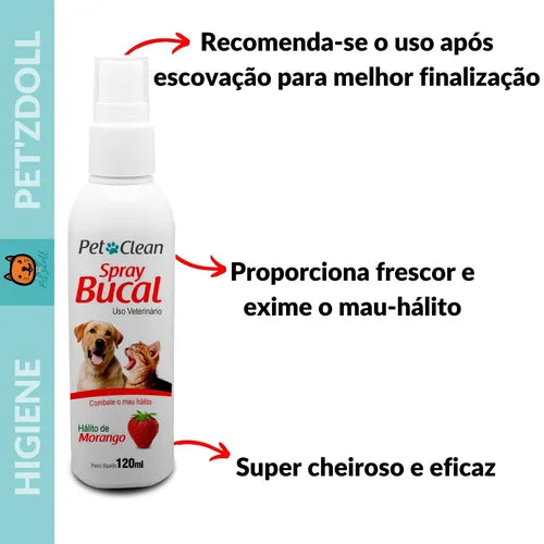 Kit Higiene Bucal Pet Creme Dental Spray Bucal e Escova Sabor Morango