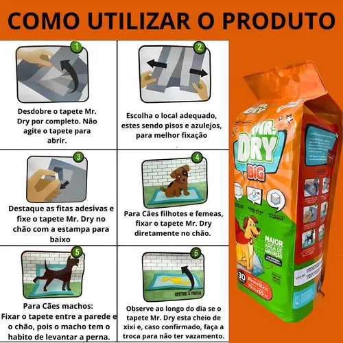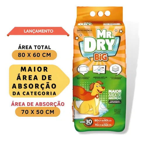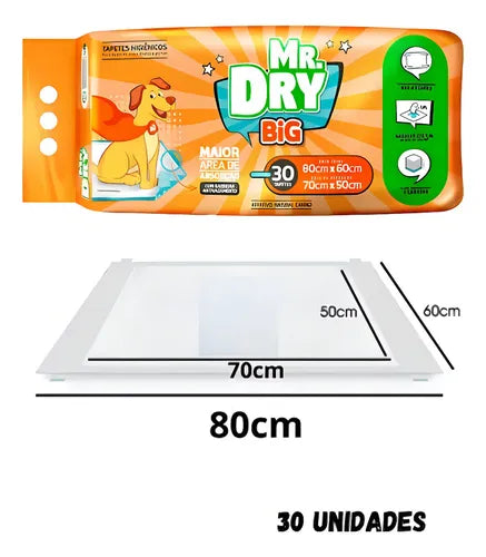 Tapete Higiênico Mr Dry Big Super Absorvente 80x60cm 30 Unidades