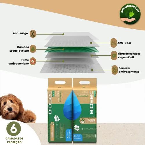 Tapete Higiênico Biodegradável Biosec Eco 60x55cm 30 Unidades