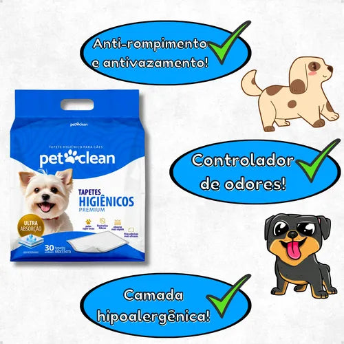Tapete Higiênico Gel Premium para Cães 60x55cm 30 Unidades Ultra Absorção