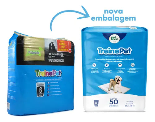 Tapete Higiênico Treine Pet Super Absorvente 55x60cm 50 Unidades