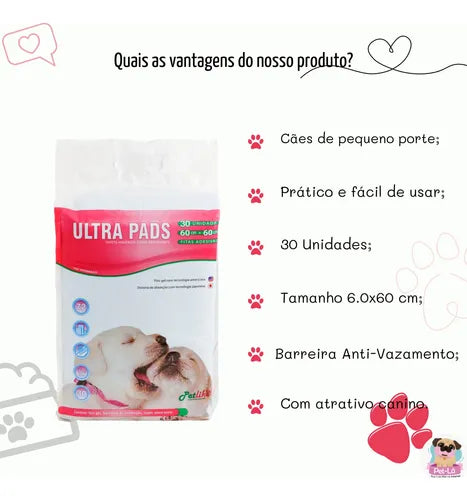 Tapete Higiênico Ultra Pad Super Absorvente 30 Unidades 60x60cm