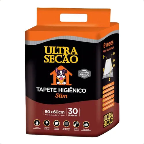 Tapete Higiênico Ultra Secão Carvão Ativado 80x60cm 30 Unidades