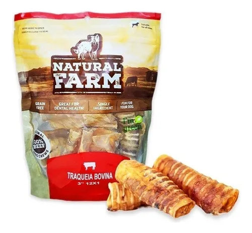 Traqueia Bovina Natural 3 Polegadas Kit com 12 Petiscos Mordedores para Cachorros